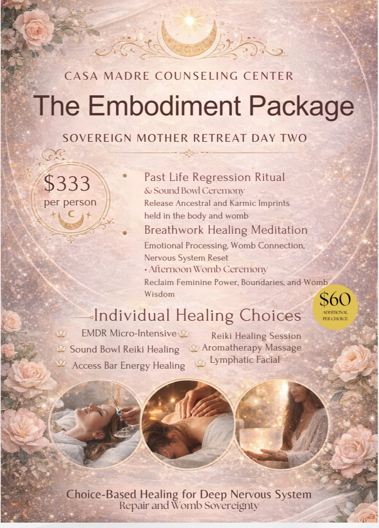 Day Two emphasizes choice as a form of healing, focusing on personal sovereignty and the right to listen to one's body and nervous system. Building on the foundation of safety from Day One, it allows for deeper emotional, somatic, and energetic healing within a trauma-informed space. Participants engage in collective rituals and receive tailored healing experiences that support mind, body, womb, and spirit integration. The day acknowledges that healing is not linear, encourages rest, respects individual choices, and prioritizes consent.